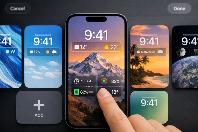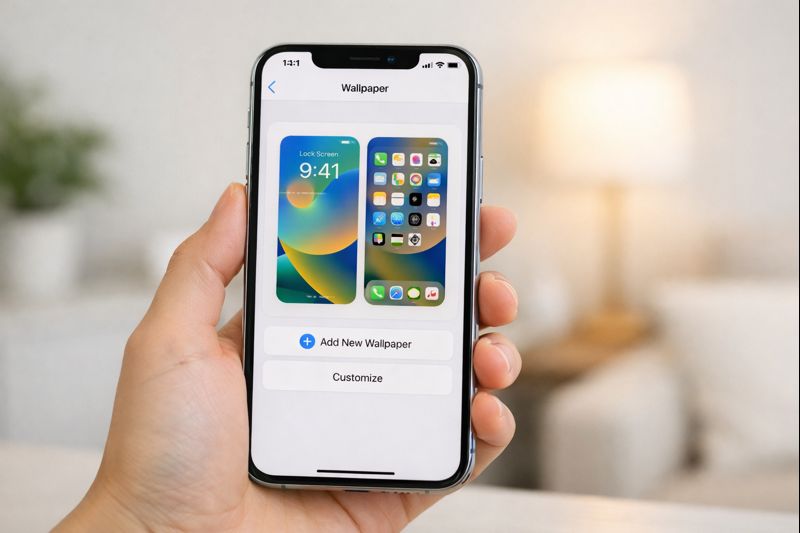iOS 16 이상에서는 잠금화면에서 바로 배경화면 변경이 가능합니다.